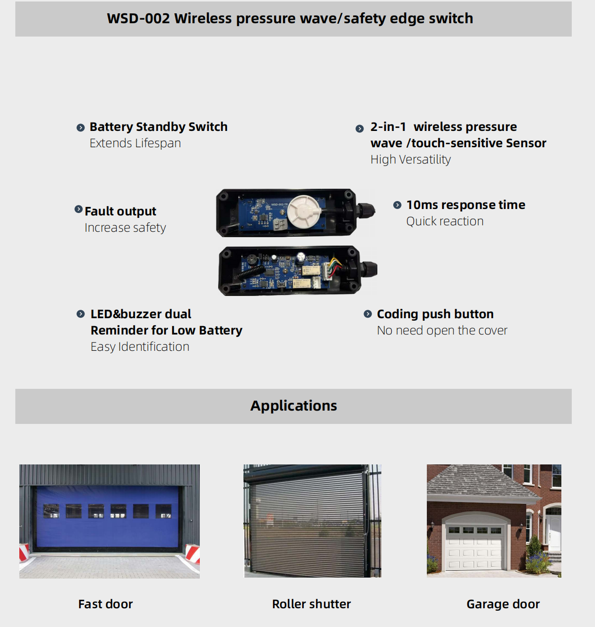 • Wireless pressure wave/ air wave switch/contact strip switch